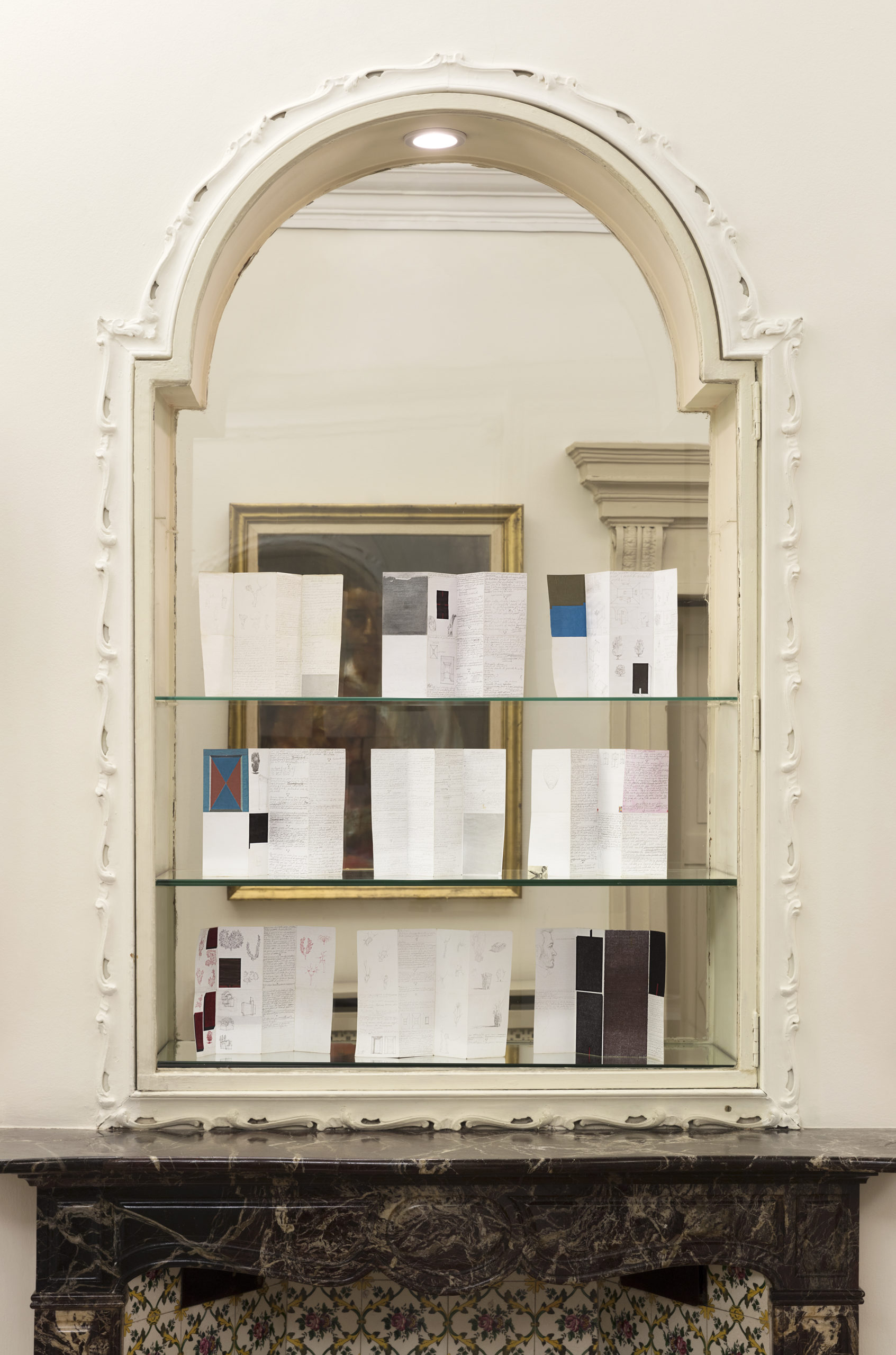 Infine una serie di pagine del taccuino sono disposte su due piani di un’altra teca, trasformandosi da appunti intimi a sculture di carta. Una rivincita dell’infinitesimale, che porta a valorizzare poesie, pensieri dell’artista e minute immagini provenienti dall’archivio personale di Giovanni De Lazzari. La lettura di queste opere rispecchia la fruizione della mostra, che a sua volta richiama la stessa cura impiegata dall’artista per osservare, raccogliere e riassemblare, tramite diversi medium, gli elementi naturali.