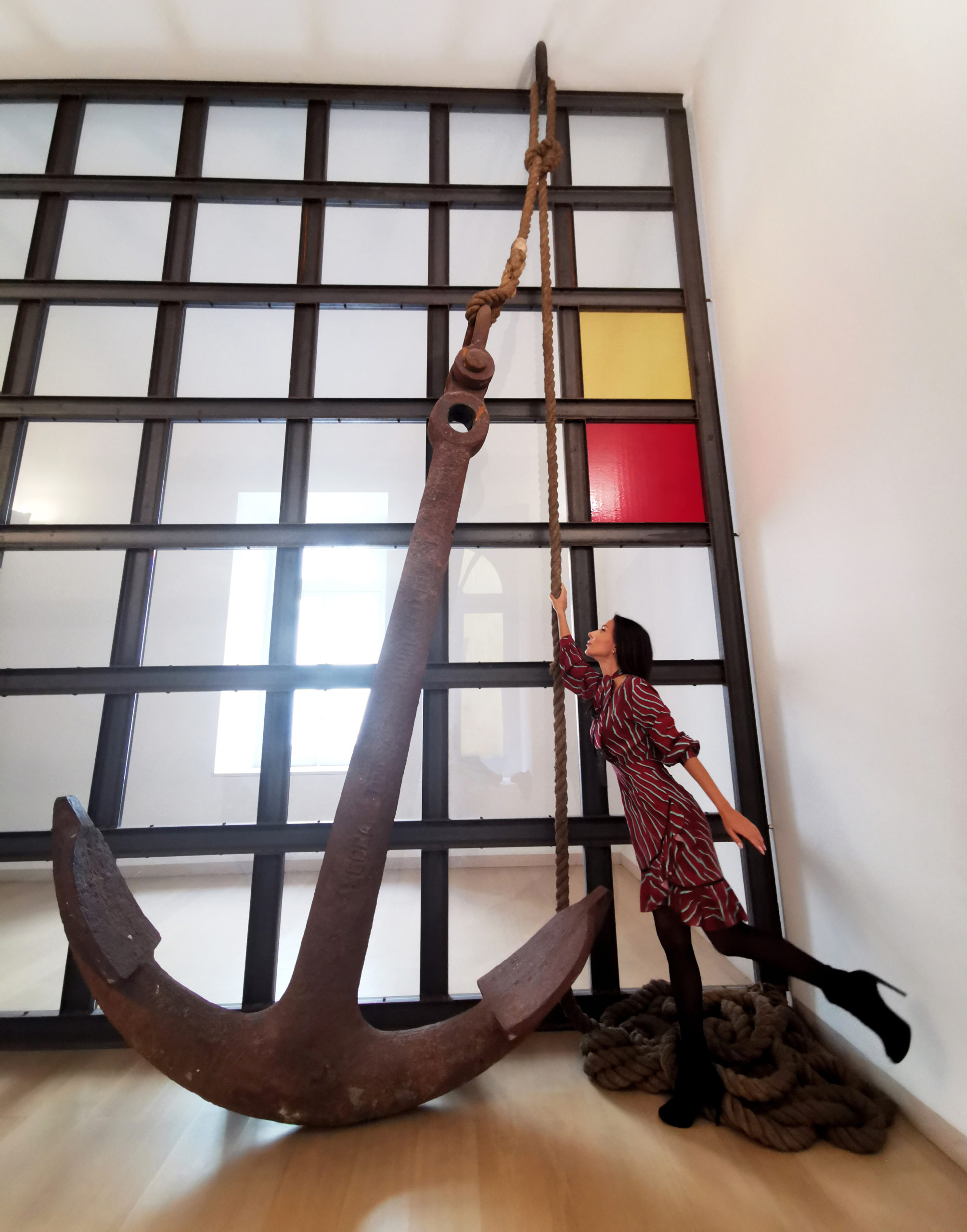 Nell’installazione creata appositamente per il Madre, la stanza a lui dedicata è bloccata longitudinalmente da una grande struttura di ferro, che lascia trasparire la luce da vetri colorati monocromi, come una versione contemporanea e critica delle vetrate delle grandi cattedrali gotiche e della centralità del ruolo dell’arte al loro tempo. Una grande ancora arrugginita appoggia il suo peso, anche metaforico, sul pavimento, dando vita a una concatenazione di rimandi al ruolo storico dell’affaccio di Napoli sul mare e sulla sua rappresentazione nella storia dell’arte non solo locale.