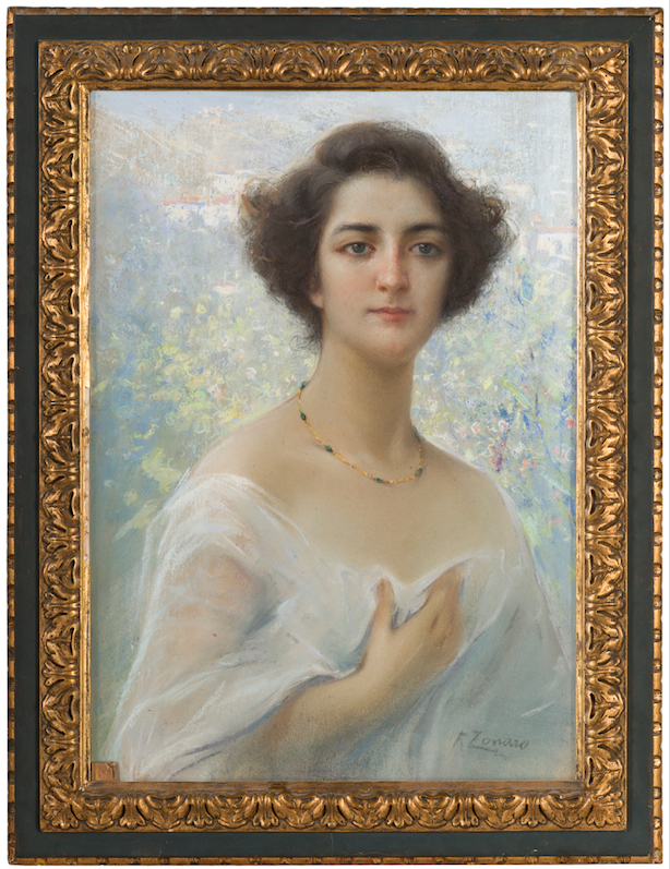 Di assoluto rilievo La venditrice di zucca di Alessandro Milesi (Venezia, 1856 – 1945) (lotto 376, stima 20.000 – 30.000 euro), una sottile tavoletta ad olio di Giovanni Fattori (Livorno, 1825 – Firenze, 1908) raffigurante la Campagna livornese (lotto 386, stima 20.000 – 22.000 euro), e La Favorita, un delicato pastello dell’orentalista Fausto Zonaro (Masi, 1854 – Sanremo, 1929).