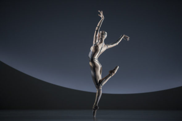 La splendida scenografia di Aimée Moreni evoca un universo retrofuturista degno di Fritz Lang dentro il quale spazia la coreografia ricca, fluida e potente come solo Maillot sa fare . Tra tutti i componenti della Compagnia monegasca spicca senza dubbio Lou Beyne, straordinaria interprete di Coppel.i.a la cui gestualità riporta davvero a quella di un robot… con l’anima. Freschi e brillanti i passi a due tra Swanilda (Anna Blackwell) e Frantz (Simone Tribuna), che contrastano con quelli ambigui e seducenti fra la “cosa” e il suo creatore. Qui il desiderio è al limite, fino al rifiuto della sottomissione. Coppel-i.a non potendo avere l’uomo che ama,finisce infatti per rompere i suoi legami con chi l’ha costruita(Matej Urban, perfetto), accecandolo e poi uccidendolo per fuggire lontano e prendere vita per inventare un altro futuro.