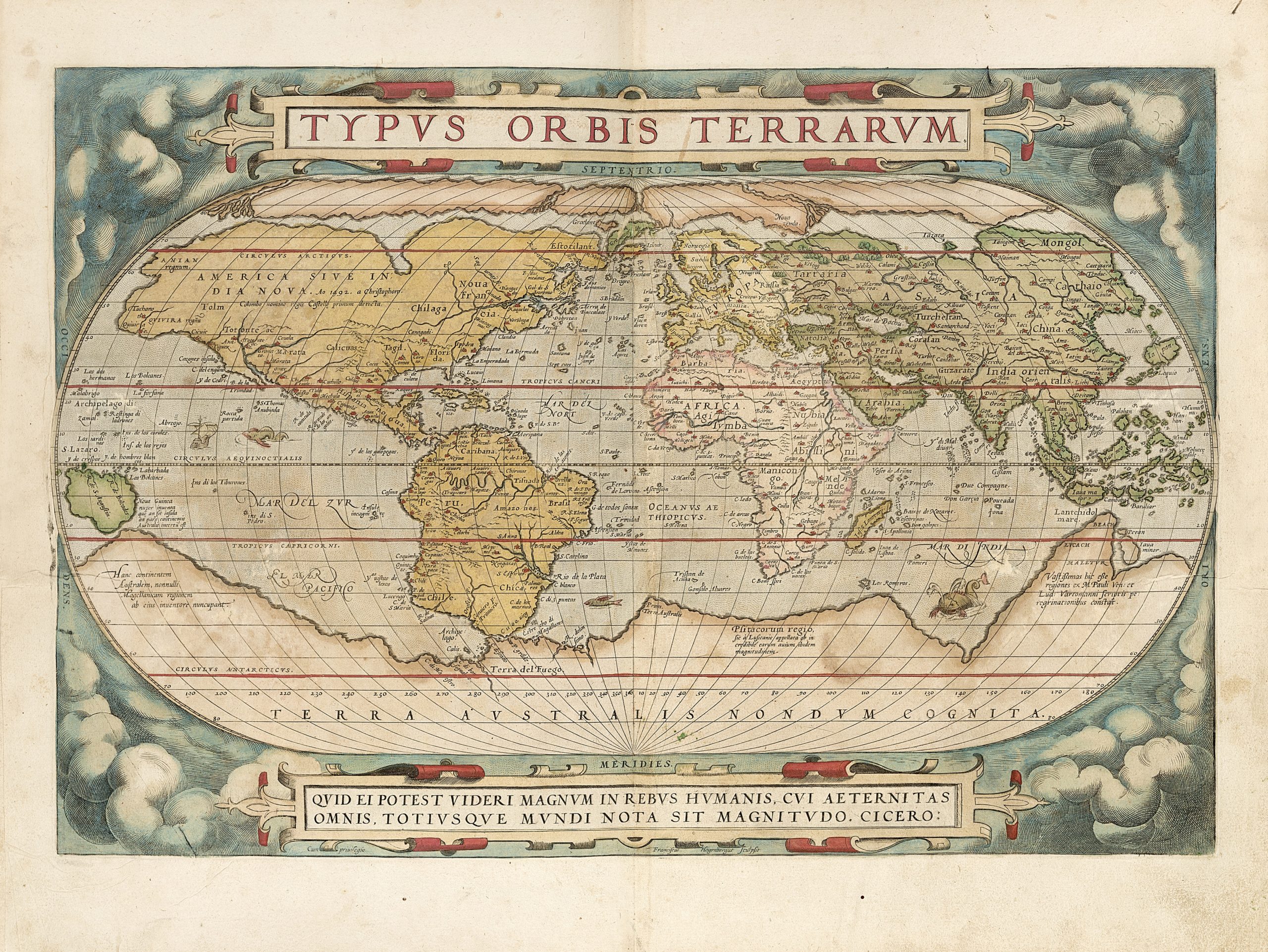 Highlight in catalogo lo straordinario Theatrum orbis terrarum, atlante di Abraham Ortelius stampato ad Anversa da Plantin nel 1570 e colorato a mano all’epoca: si tratta della prima edizione a contenere il Parergon e il Nomenclator ptolemaicus, e seconda edizione in latino, in buona conservazione, completa di tutte le mappe (stima € 25.000-35.000). Sempre di Ortelius il Theatrum orbis terrarum del 1584 con 112 mappe invece delle 93 delle edizioni precedenti (stima € 12.000-18.000).
