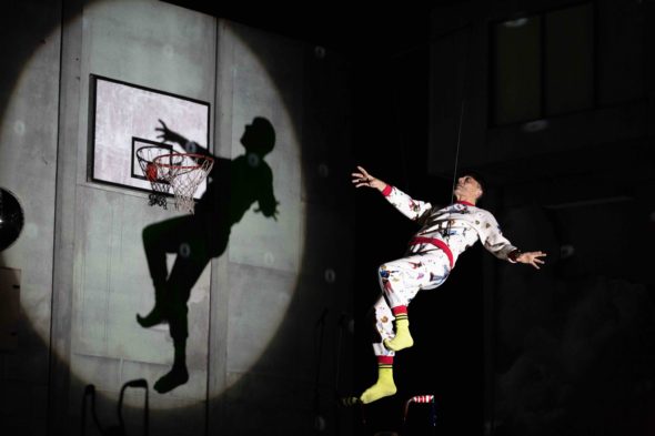 Lo spettacolo ha per protagonista un bambino diversamente abile che non corrisponde, certo, alla creatura che i genitori si erano immaginata al momento del concepimento, bensì ad un bambino con la scatola cranica “sigillata”, chiuso con i pattini in piedi nel suo spazio, rappresentato scenicamente nella palestra di una scuola elementare.