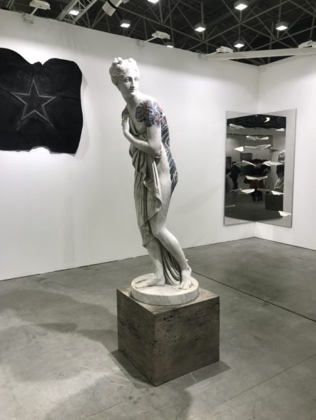 Doppio stand per Poggiali, che oltre alla Main Section partecipa anche alla sezione Fotografia con le fumose visioni di Goldschmied & Chiari. Nello spazio principale si alternano le fumose superfici di Parmiggiani, i marmi “rivisitati” di Fabio Viale e i ritratti scultorei classici ridotti a due dimensioni da Luca Pignatelli. Una galleria che sa fare buon uno del grande spazio a disposizione con un allestimento che esalta le singole opere e al contempo favorisce il dialogo tra le stesse.