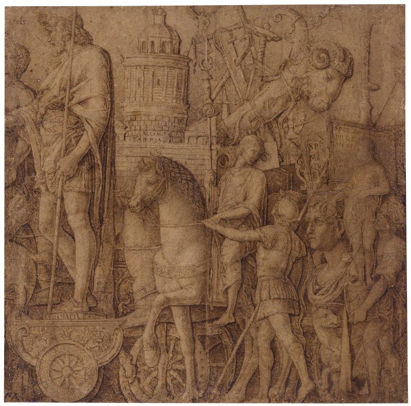 Era uno dei due disegni rimanenti di Mantegna – su 20 esistenti – ancora in mani private e non nella collezione di un grande museo. Era stimato 12 milioni di dollari. Datato alla fine del 1480, il disegno è l’unico studio preparatorio noto per il celebre capolavoro del Mantegna che, in una serie di nove dipinti monumentali, raffigura la processione trionfale di Giulio Cesare e il suo esercito attraverso l’antica Roma.