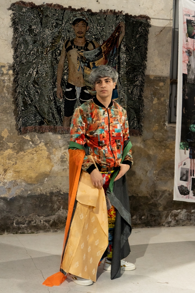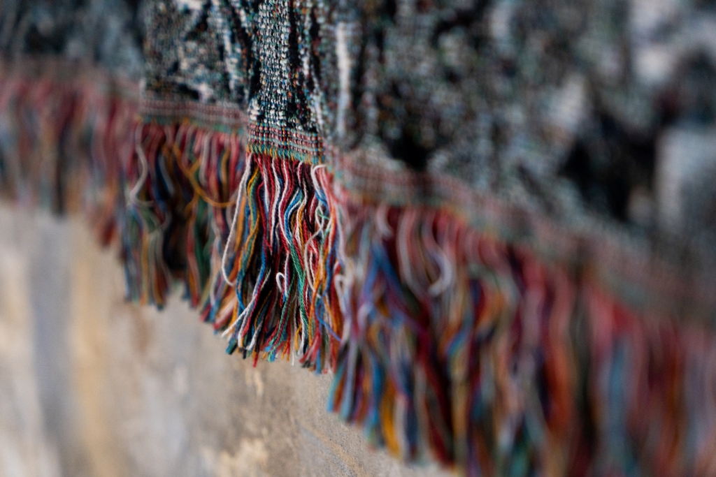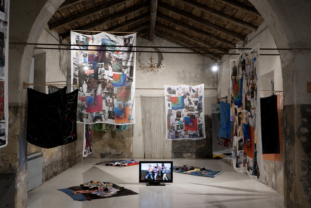 Queste nuove opere tessili realizzate appositamente per questo intervento romano, dialogano con i video e la musica che accompagnano questa collezione, messa in scena con un’esibizione poetica e potente.