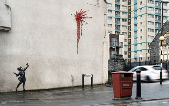 L’amore al tempo dell’intolleranza. Banksy dedica a suo modo la festa degli innamorati alla sua Bristol. Una bimba con la fionda colpisce quello che sembra rimanere del povero Cupido. Innocenza verso ipocrisia? A voi l’interpretazione, l’artista non ha lasciato alcun commento sul suo account Instagram dove ha rivendicato il murale apparso la notte del 13 febbraio