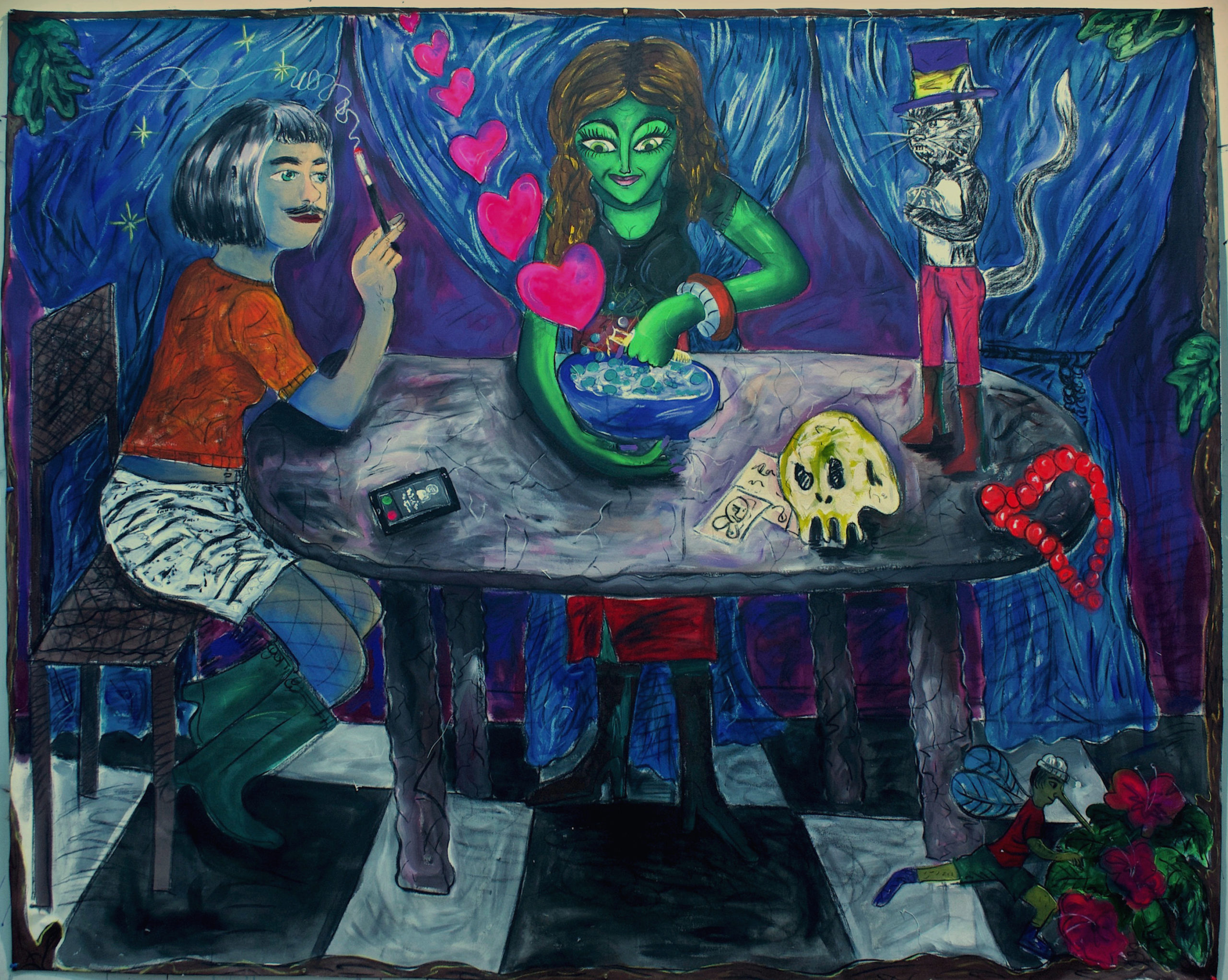 Guardo spesso quella pittura “acida” legata al l’espressionismo tedesco (George Grosz, Otto Dix, Max Beckmann, Erich Heckel, Ernst Ludwig Kirchner) e la capacita compositiva e di enfatizzazione dei sentimenti del disegno animato degli anni 30-40 che porta all’estremo un emozione attraverso una semplificazione dell’immagine (Betty Boop,Tom e Jerry, MerrieMelodies, Flip la Rana, Braccio di Ferro).