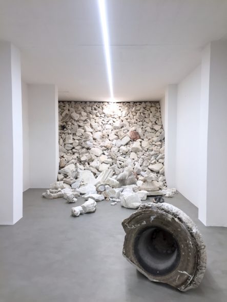 Infine, nello spazio secondario della galleria (quello parallelo alla via della trattoria dei 13 Gobbi, assoluta istituzione per andare a mangiare la Fiorentina) un’altra sorpresa. Una cascata di marmo, che nei suoi flutti cela statue greche e romane. Reperti di una poetica che Viale non solo non ha mai abbandonato, ma ha elevato.