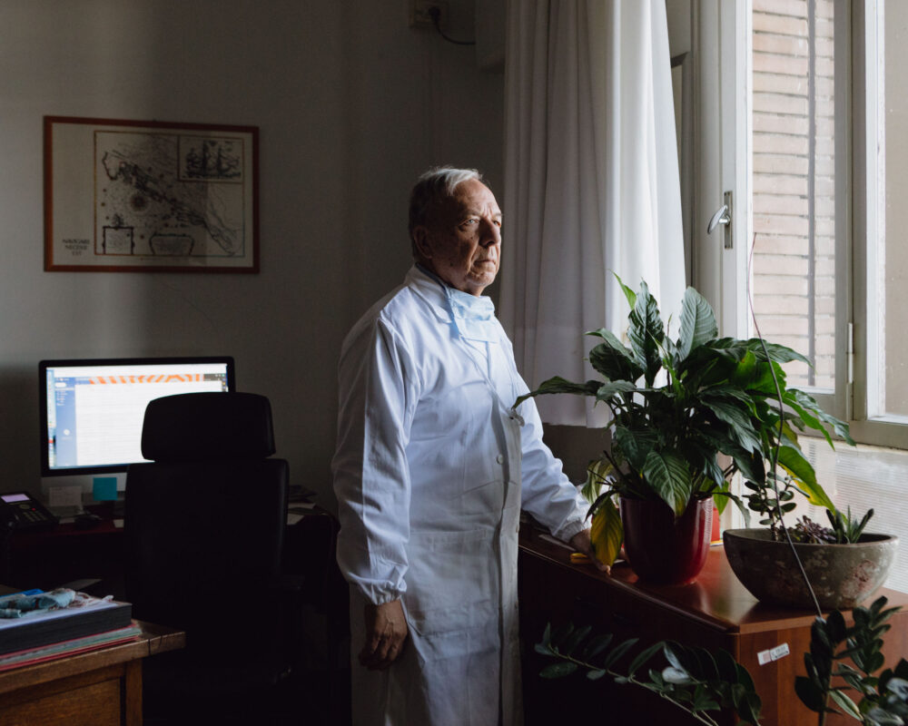 La disponibilità da parte di tutti è stata inaspettata, la mediazione da parte delle istituzioni ha facilitato molto il mio lavoro con il personale sanitario e i cittadini. Da quel momento ho iniziato a fotografare le attività essenziali rimaste aperte durante il lockdown, come il supermercato, le Poste, i corrieri, la farmacia, etc. In seguito mi sono dedicato al personale sanitario e ai successivi screening fino a una settimana fa, quando sono andato a fotografare la macchina che analizza 9.000 tamponi al giorno (tra cui il mio, negativo). Proprio il sindaco Martini mi ha raccontato che se inizialmente il virus colonizzava ogni discussione, rendendo ancora più opprimente il clima, con il passare dei giorni sono subentrate forme di adattamento e di solidarietà. La condivisione di una situazione inedita ed estrema ha avvicinato le persone: “Si è creato un bel senso di cooperazione”. Grazie a questo grande impegno collettivo sono state salvate decine di vite.