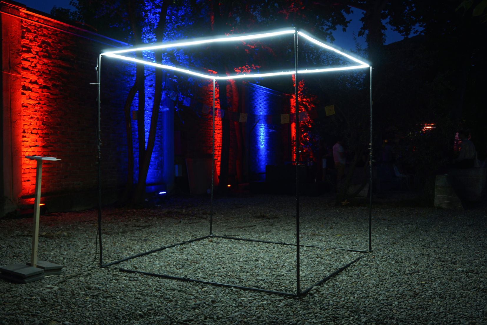 Zhenru Liang, di Pechino, vive e lavora a Milano. Liang vuole contribuire a creare una società più dinamica e aperta al nuovo. Per questo trasmette una visione dell’uomo/artista, come colui che in tutte le epoche, come un eterno sciamano, ha sentito e vissuto profondamente l’enigma del futuro, in questo caso presentando due installazioni, una all’esterno, un cubo attraversabile illuminato e al piano interrato una complessa scultura tubolare che terminerà con una luce nera. Due ‘sculture abitabili’ fulcro della ricerca dell’artista.