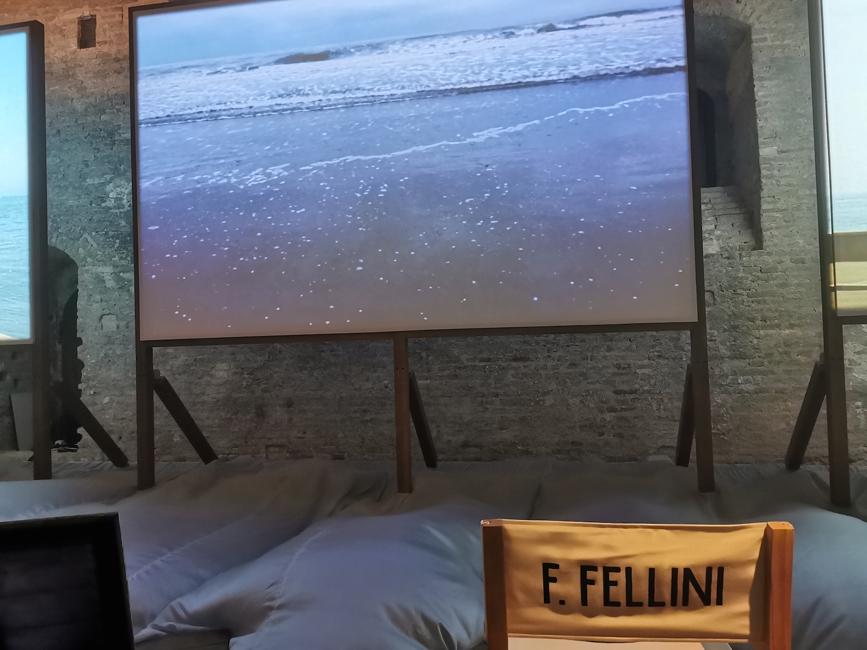 “Il Museo Fellini è articolato su tre gambe”, è ancora Andrea Gnassi a guidarci alla scoperta. “Il Castello, che diventa una macchina spettacolare, con contenuti straordinari, diritti dei film acquisiti, collaborazioni e partnership con la Rai Mediaset, Titanus… C’è una storia italiana, in queste immagini, prima in bianco e nero, poi a colori. Si parte da suggestioni pasoliniane e neorealiste per arrivare all’immaginifico tipicamente felliniano. L’altra gamba è il Fulgor, il Palazzo del Cinema, l’opposto del Castello, che diventa fabbrica di lavoro, un’academy legata alle relazioni tra cinema, arte, musica. Ci sono le moviole, postazioni per montare, arrivano i bambini e possono costruirsi il loro film. E tra il Fulgor e il Castello c’è Piazza Malatesta, c’è la memoria di Sigismondo, dei Gonzaga, degli Este, degli Sforza. Oggi c’è un anello centrale ispirato a quello di 8½, il circo della vita”.