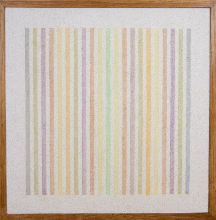 «Le “Grammature di colore” su supporto intonaco – scrive Bruno Corà – sono state declinate da Marchegiani in versioni differenti, tanto da costituire una delle fasi del suo lavoro tra le più cariche di sviluppi di implicazione, investendo e intersecando ambiti come la geometria, la ritrattistica, l’interior decoration, la filosofia e perfino il linguaggio codificato. Le precoci “Grammature di colore” di Marchegiani si annoverano come una delle sue numerose diverse ricerche sui fondamenti del fare pittura quale sinonimo del suo magico mantra, spesso riferito, del “fare per far pensare”. Alle “Grammature di colore” di Marchegiani, negli stessi anni, come in un’ideale consegna, succede l’azione della pittura di cemento di Cacciola. Suscitato dalle proprie “Superfici integrative” del 1973, l’interesse e la ricerca di Enzo Cacciola di nuovi materiali nel processo creativo della pittura sfocia in una serie di opere in cemento e asbesto su tela nel luglio 1974. Se a Marchegiani questo lavoro compiuto da Cacciola interessa, è proprio perché, dal suo punto di vista, esso rappresenta l’invenzione nuova che succede al supporto intonaco della pittura su cui le “Grammature” sono realizzate. Con Cacciola e i suoi “Cementi” si manifesta un termine temporale che deve essere posto in relazione a quello in cui la pittura ha iniziato a manifestarsi su supporto ‘muro’ e quindi su intonaco, di cui Marchegiani si rivela essere l’interprete critico-analitico-pittorico più lucido e chiarificatore in senso concettuale. In modi diversi, Marchegiani e Cacciola hanno dato prova fino ad oggi di una tenuta davvero sorprendente di tensione ideativa e operativa, la cui fecondità ha fornito l’interessante terreno da cui – tra le altre – sono cresciute e venute in evidenza le elaborazioni originalmente sensibili e durature osservabili in questo episodio di Verona».