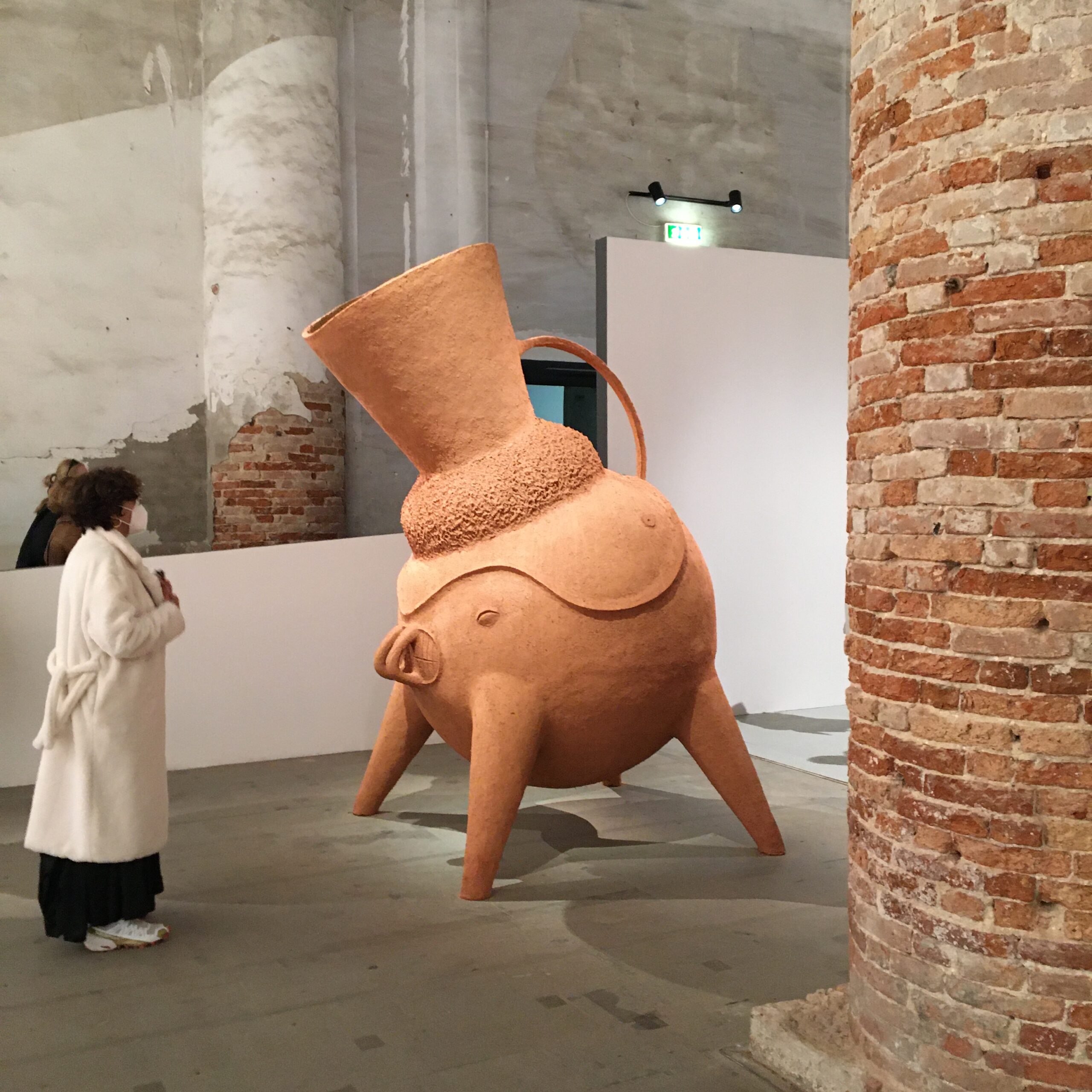 Fatti non fummo a viver come bruti… ma strafatti per vedere la Biennale 59, sì. Nessuna sorpresa, segue a ruota la Biennale di Architettura e si inserisce nel medesimo solco. L’asticella dell’avversione verso l’uomo bianco si alza sempre più, come vi ho già più volte raccontato e questa edizione della Biennale Arte a questo proposito non si fa mancare nulla. Il desiderio di riscrivere la storia umana e costruire un presente risarcitorio nei confronti di minoranze o presunte tali, per poi prefigurare e auspicare un futuro dove magari un salto di specie possa imprimere una metamorfosi umana, come nei racconti orrifici della Carrigton, si configura ormai come una vera e propria ideologia con la quale dovremmo fare i conti.