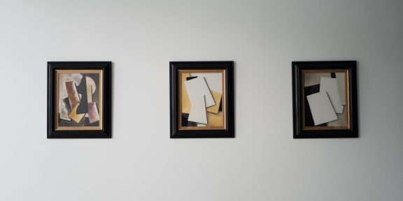 Il terzo momento della mostra è costituito da lavori di carattere fortemente luminoso, chiaro, all’interno dei quali i soggetti del riquadro, dello schermo, della croce, intendono offrire un ulteriore aspetto del grado di trasformazione che le ermetiche elaborazioni di Ciaccio offrono. Il passaggio tra una percezione immediata della forma-colore e la sua risonanza interiore, dove il tempo si fa luce.