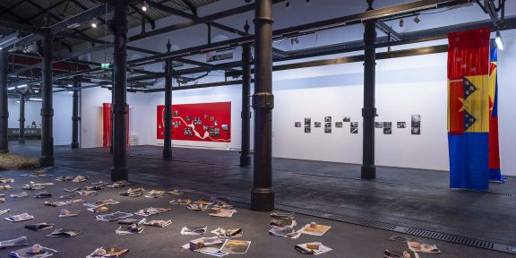 La mostra spicca il volo con il suggestivo allestimento dell’opera Il re magio (2018), presentata all’interno di una ampia piattaforma simile all’altare di un tempio, insieme ad una serie di sedici formelle rettangolari in bronzo (Senza titolo, 2005) che introducono ad un ambiente più intimo, occupato da una serie di disegni del 2022 a grafite e tempera, vicino ad uno spazio in gradinata, dedicato alla presentazione di alcuni cataloghi, progettati dall’artista in occasione di sue mostre personali. Come coup de théâtre finale, Cucchi ha dipinto a guisa di epigrafe su una gigantesca vetrata queste frasi: La pittura raduna il peso delle cose. Una pittura è una cosa calda. Si vede da lontano che odi la pittura. Mostra e muori. Nel suo andamento undivago e stratificato, la mostra ricorda il genius loci di Roma, definita da Cucchi “una foresta di città”: come nella città eterna anche qui vita e arte si uniscono in uno sfaccettato labirinto di specchi simile alla Biblioteca di Babele descritta da Jorge Luis Borges, grande assente tra i libri presenti al Maxxi. È allo scrittore argentino che si potrebbe dedicare questa esposizione, accompagnata da un denso e interessante catalogo, edito da 5 Continents.