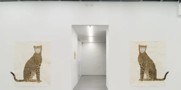 Un’altra galleria aperta di recente che punta sugli emergenti è Divario, nel cuore del quartiere Prati, dove fino al 12 aprile è aperta “Natural Disaster”, prima personale di Francesca Cornacchini, che ha trasformato lo spazio della galleria in un luogo dove materiali del quotidiano assumono un aspetto quasi sacrale. Incorniciata da Incendio: allegoria del fuoco (2024), una pannellatura in ferro zincato, che reca le tracce di bruciature di fumogeni, l’opera Il Sole (2024), composta da una serie di tute sportive cucite quasi a comporre una trama di segni e loghi, introduce visivamente le altre opere della mostra, collocate alle due pareti laterali della galleria. Un paesaggio di rovine di una civiltà trascorsa, un “cammino nel caos” che l’artista ha costruito con rigore e consapevolezza, ci ricorda la fragilità della nostra società, costretta tra rituali consumistici fine a sé stessi e sempre più privi di senso, in un presente già trascorso e un futuro incerto. “Il presente è passato da indefinibili anni, Nuovi angeli abitano la Cattedrale del Disastro naturale” scrive l’artista, capace di creare un ambiente carico di una tensione invisibile ma palpabile.