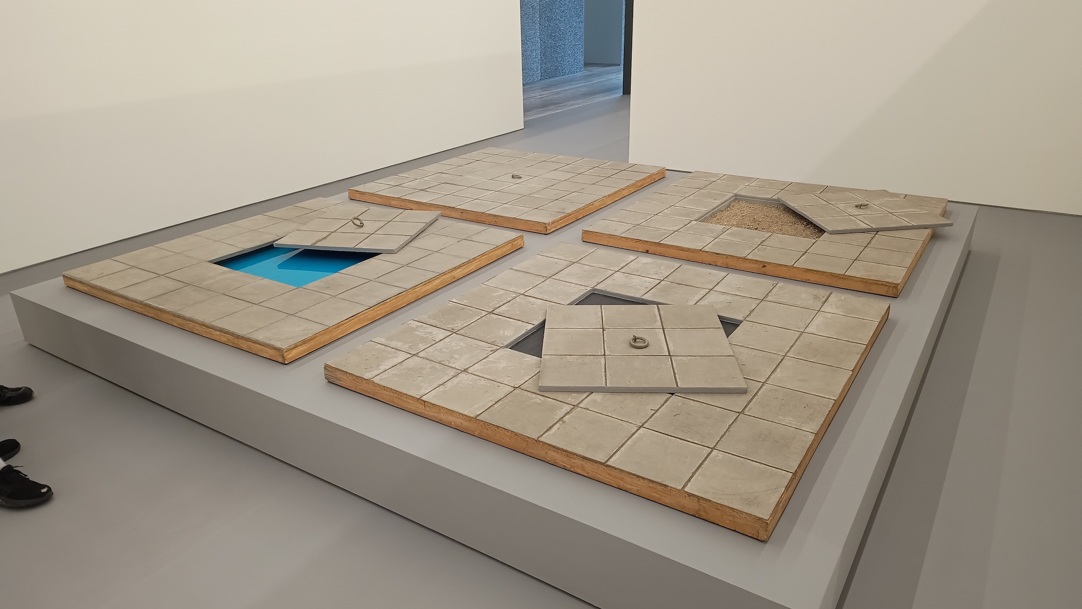 E l’ampia retrospettiva riesce generosamente ad illustrare queste premesse, proponendo un’approfondita ricognizione di ogni aspetto della produzione del grande artista. Il progetto espositivo si divide in quattro sezioni e si sviluppa in tre edifici della sede di Milano: il Podium, la galleria Nord e la galleria Sud. Quarantanove opere di Pascali provenienti da musei italiani e internazionali e da prestigiose collezioni private. E poi nove lavori di artisti del secondo dopoguerra, e una selezione di fotografie che ritraggono l’artista con le sue opere e un video.