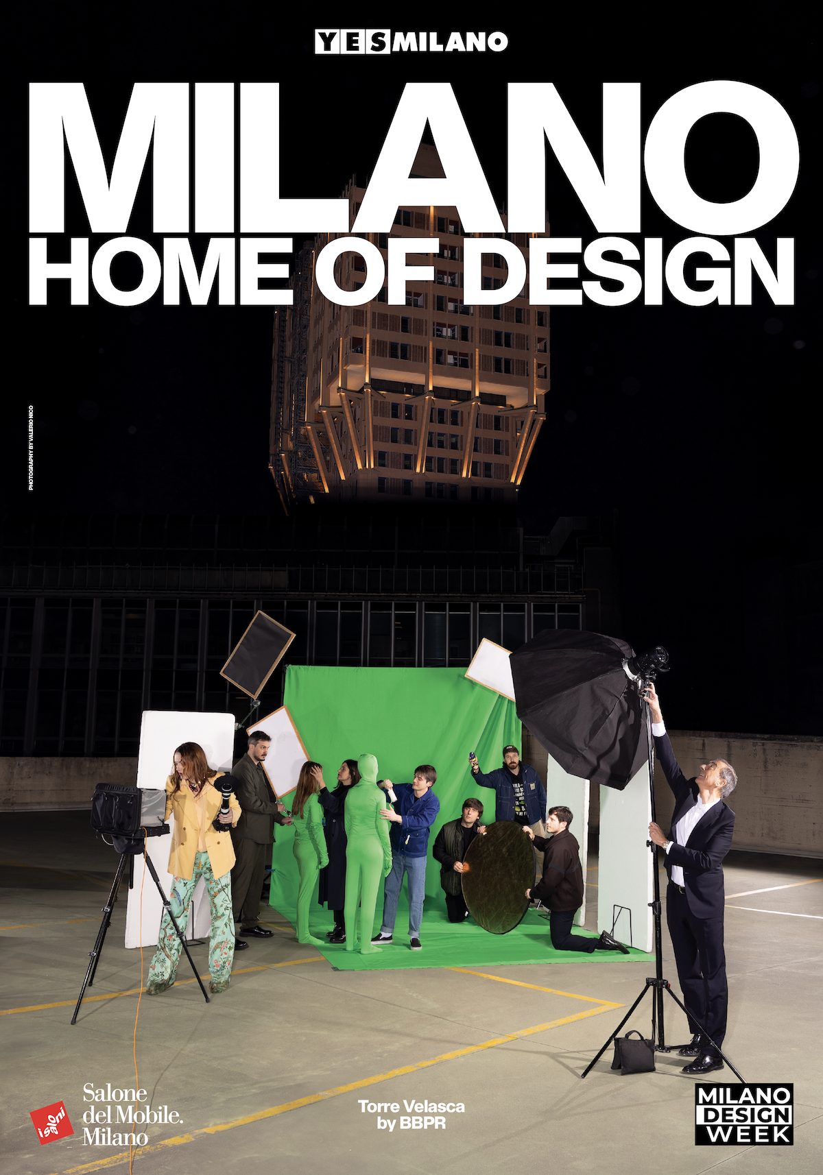 Sul tetto di un parcheggio con vista Torre Velasca, una troupe di professionisti del set si appresta ad allestire un photo-shoot. Una scena altamente milanese, che si vede ogni giorno, ci offre la cornice per presentare talent di spicco milanesi —che però impersonano la troupe. La scena si ribalta e i talent diventano comprimari della vera protagonista della foto, la torre Velasca.