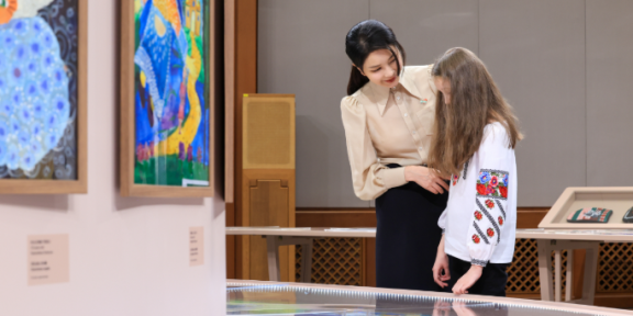 Dopo 35 anni di matrimonio Ilya Kabakov (Dnipropetrovsk – URSS, oggi Dnipro, Ucraina 1933 – New York 2023) ha perso la vita, ma non la sua arte, che continua a vivere nell’attività della moglie Emilia Kabakov (Dnipropetrovsk – URSS, oggi Dnipro, Ucraina 1945). Realizzate a quattro mani, in mostra troviamo due sculture – The Eternal Emigrant” e “Golden Apples – e un arazzo – The Flying # 3. Carolina Mazzolari (Milano, 1981) e Conrad Shawcross (Londra, 1977), sposati dal 2013, vivono e lavorano nell’East End di Londra, in un loft che prima ospitava un impagliatore di animali e ancora prima la stalla dei cavalli dell’”autobus” 38. L’edificio è sia una casa che uno studio su scala industriale, dove creano i loro lavori profondamente poetici, filosofici e di natura astratta. La mostra presenta i tessuti cuciti da Carolina che, giustapposti alle sculture geometriche in acciaio di Conrad, suggeriscono la dualità dello yin e yang, bilanciando due opposti che sono l’espressione di un’unione indivisibile.
