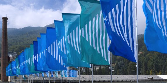 Curata per il quarto anno da Giovanni Carmine, che ci ha rimarcato una ritrovata positività generale del mercato, stabilizzatosi ai numeri pre-pandemia e dunque anche ad una ritrovata fiducia dei galleristi a proporre e a sostenere partecipazioni complesse come quelle ad Unlimited, appunto, a vincere da queste parti c’è anche un po’ di Italia, che si schiera magnifica ed esuberante proprio all’ingresso, a partire dal grande Progetto per la pace di Mario Ceroli (1968). Presentato da Cardi (Milano), l’installazione è un trionfo di bandiere bianche a formare una vera e propria foresta di simboli che hanno oggi più che mai a che fare con il nostro presente e che, allo stesso tempo, rappresentano una pietra miliare della produzione dell’artista romano che, proprio di recente, abbiamo visto in scena in una monumentale mostra esattamente da Cardi.