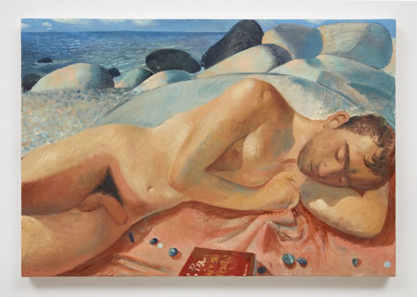Inoltre, Fratino ha trascorso l’estate del 2019 sull’isola del Giglio: giornate libere e spensierate alle quali ha dedicato i dipinti View of Monte Cristo (2020) e Ginone (2020). “Dalla nudità evocata, da quella gioiosa di gruppo fino alla più esplicita, Satura è un viaggio nel mondo omoerotico che tanto deve al contesto italiano nel quale si è mosso Fratino”, scrive il curatore nel bel catalogo, edito da Mousse Publishing e ricco di interessanti contributi.