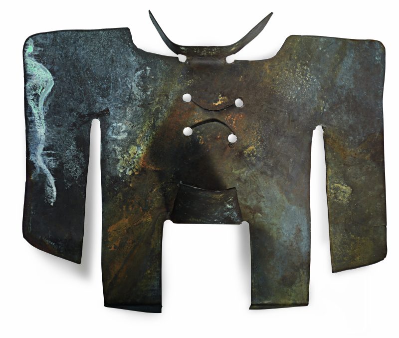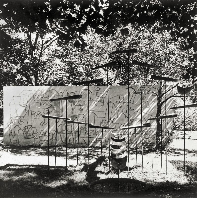 Partito da esperienze di pittura e grafica l’artista giunge a creazioni scultoree nel 1950, con le lamiere quasi taurine de Gli Antenati, con l’invenzione del sandcast e con i Totem, monoliti di cemento che richiamano nelle fisionomie un aspetto quasi umano ed insieme primordiale e oscuro, di idoli misteriosi e noctoni. La marcata verticalità di questi elementi richiama alla mente i menhir, megaliti disseminati in Europa occidentale che tornano protagonisti di una area sociale nel progetto del 1965 Monumento a Sebastiano Satta per la Piazza plebiscito di Nuoro. Di questo capolavoro – ora conosciuto semplicemente come Piazza Satta – parlano i prospetti architettonici e i bellissimi disegni esposti. Qui cielo e terra si incontrano nella linea bianca dei palazzi, percorsa da quella sottile e bleu dell’artista mentre – nello spazio cosparso di enormi blocchi di granito su cui si stagliano piccoli bronzi raffiguranti il massimo poeta sardo – la pietra intrusiva unisce la città al suo monte e a tutta l’isola. Ad unire cielo e terra è anche l’acqua, di fronte alla sete tutto ciò che uno desidera. A questo elemento è sempre diretta l’attenzione dell’artista, letta nell’esposizione in parallelo al culto delle acque, che in Sardegna durante l’età del bronzo vede il fiorire di pozzi e fonti sacri.