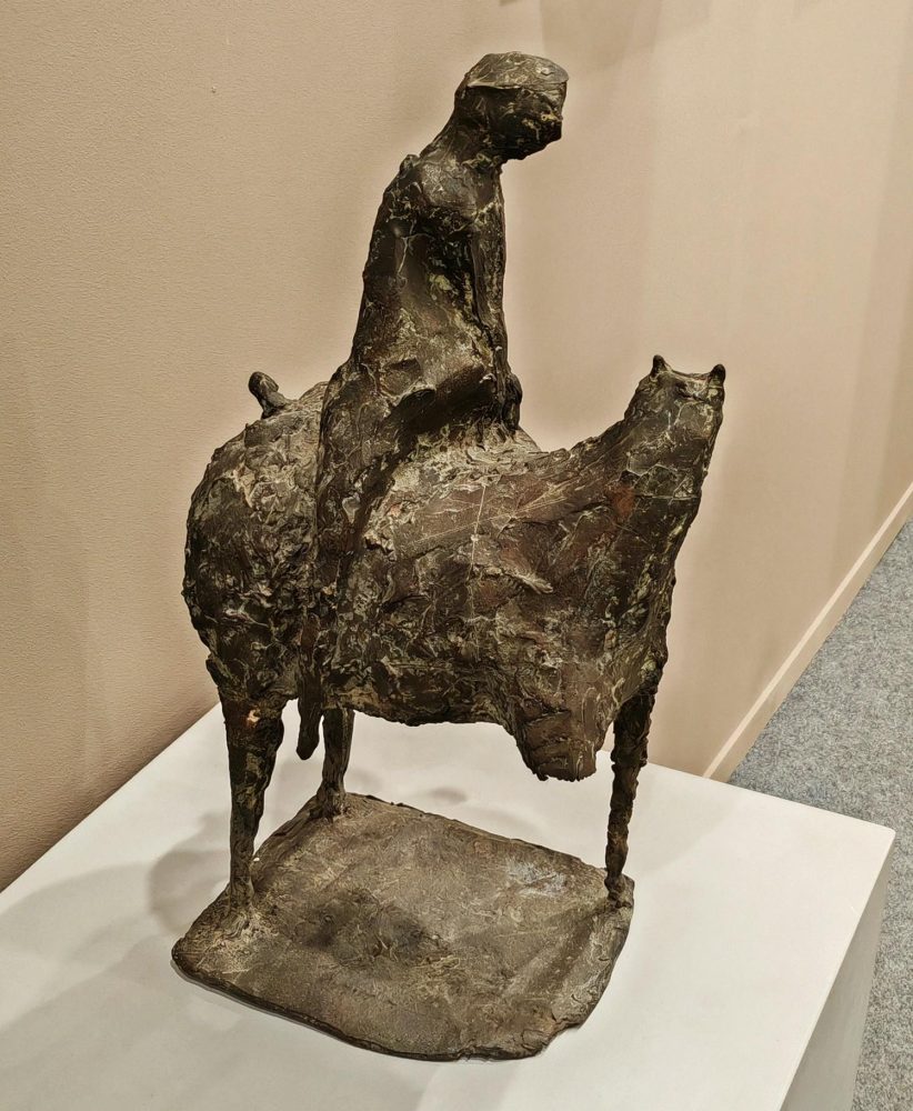 A partire dallo stand di quella galleria Leandro Navarro, che abbiamo già indicato come un o dei più belli di tutta la rassegna. E che fra i tanti maestri internazionali piazza alle proprie pareti una piccola ma straordinaria natura morta ad acquerello di Giorgio Morandi. A pochi passi affiancata da un bronzeo cavaliere di Marino Marini. A dominare addirittura il centro dello spazio della galleria Cayon c’è invece un Nero e Oro di Alberto Burri.