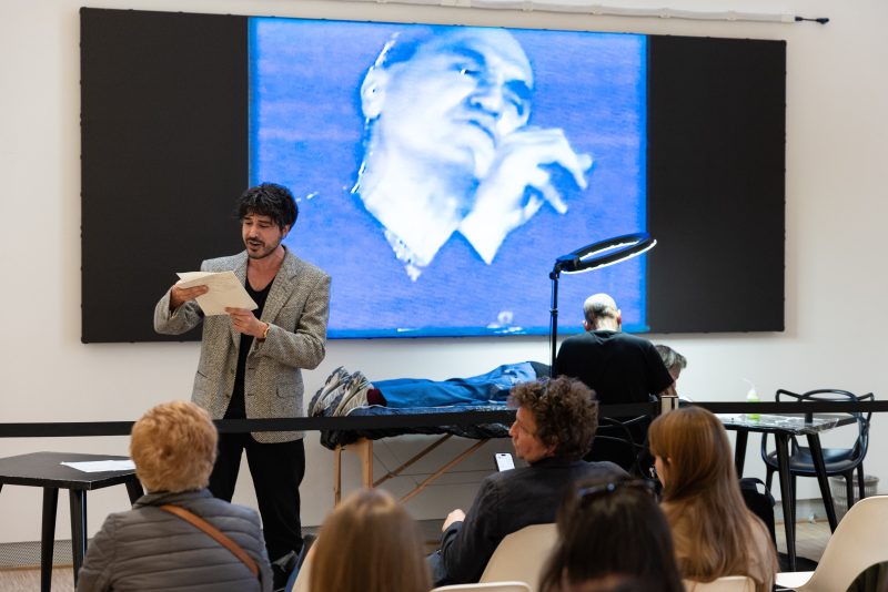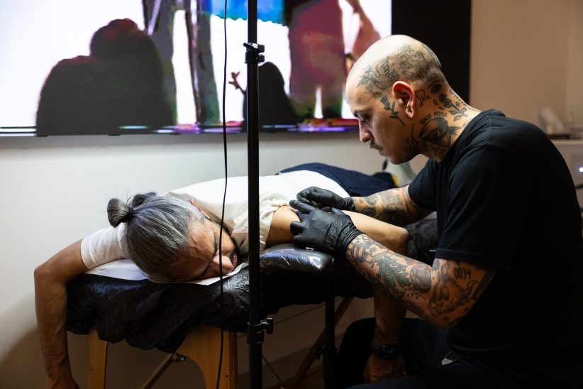 In occasione della mostra “John Giorno. Labour of Love“, a cura di Nicola Ricciardi con Eleonora Molignani, alla Triennale di Milano, fino a domenica, abbiamo assistito all’evento “John Giorno: Poetry Readings & Tattoos”, dove un vero tatuatore era all’opera mentre il poeta americano performava sullo sfondo, in un video. E noi di ArtsLife non ci siamo fatti scappare l’occasione di performare a nostra volta, “recensendo” l’evento in diretta, con l’artista Marcella Vanzo e un suo componimento poetico.