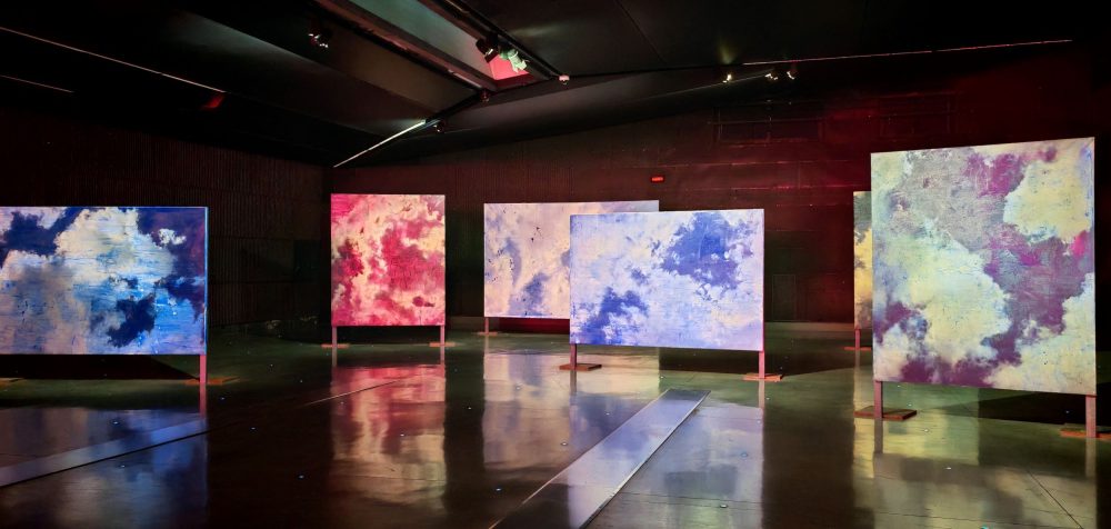 Oltre alle sei grandi tele emulsionate appartenenti al ciclo dei cieli, il progetto espositivo prevede la presentazione di altri due lavori inediti. Il primo, “Gotthard Pass”, è un progetto grafico digitale realizzato sulla base di scatti fotografici autoprodotti, con 18 ampie vedute montane del Passo del San Gottardo. Il secondo è la video installazione “Soleil levant”, video di 120 secondi in cui l’apparente staticità di un’alba milanese lascia spazio ad un mutare impercettibile ma evidente di colori e forme.