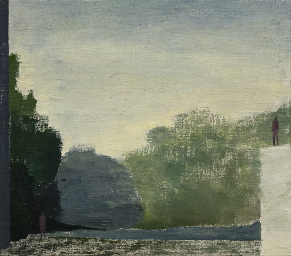 Non vi è, quindi, una pittura a partire da un’idea, ma il rovello quanto mai assillante del daimon che è domanda, continuità, apertura; che induce a incontrare l’uno nel molteplice, o il nuovo nel già visto. Quei riferimenti per sé cari che si tramutano nella finestra-soglia tra interno ed esterno di ciò che l’artista ha appreso e di ciò che scopre avere dimenticato. Tutto si gioca nel limite che l’opera è. Lo ricordavamo per la cornice espansa, con la tela sorretta da impalcature lignee e a volte colorate. Ebbene, la struttura oggi ha un sapore classico, fatta di riprese, rimandi tra il voluto e il ritrovato. La cornice degli Amanti (2023) da esterna entra nella quinta di Ancora senza titolo (2022) e svolta la traiettoria: le figure da statiche e contemplative diventano così mutevoli, in piena tensione. Sempre essenziali, eppure diverse, che non desiderano altro che sprigionarsi da dove sono. È una questione pittorica vista nel suo divenire.