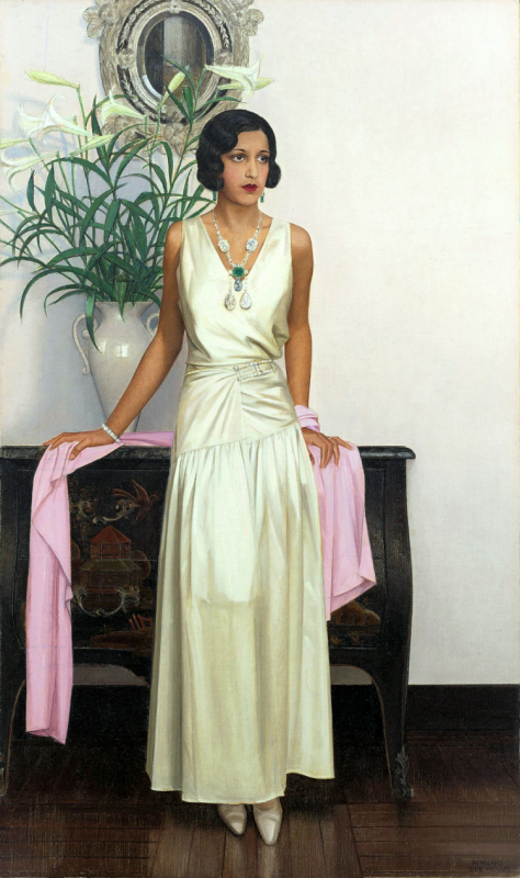 mounted in an Art Deco Mauboussin sautoir, Portrait by Bernard Boutet de Monvel