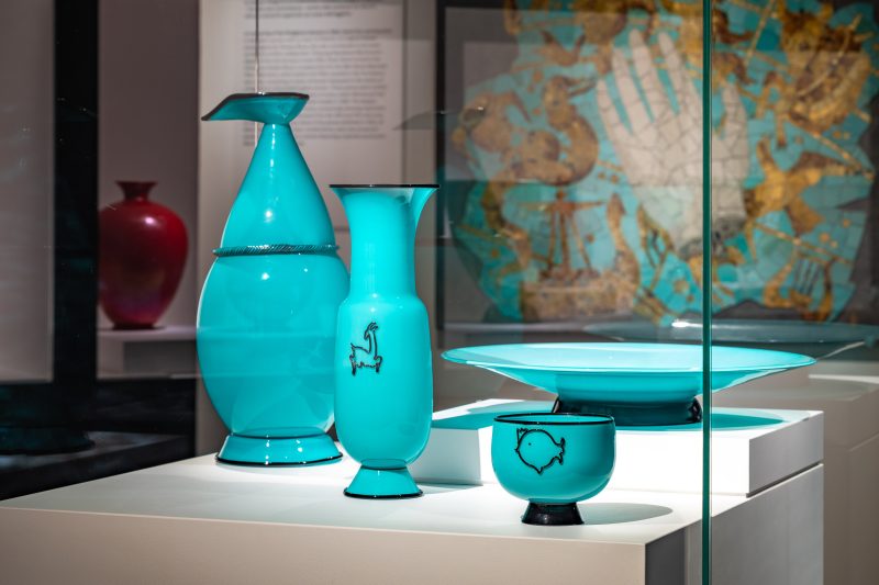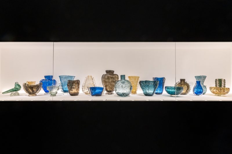 In questa mostra si respira l’elettricità di quegli anni. La voglia di sperimentare, anche quando il mondo si stava oscurando. Vetri leggeri, pesanti, soffiati, incisi, a murrina, a lume, con canne, con foglie d’oro, con storie. Perché ogni vaso, ogni coppa, ogni scodella esposta oggi qui era già allora una sfida: alla tradizione, al mercato, al tempo.