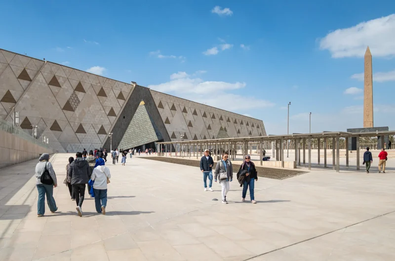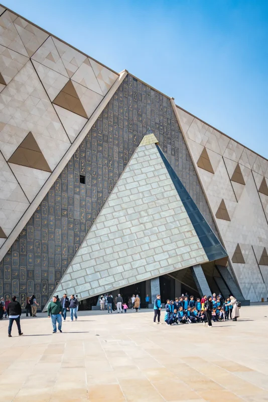 A pochi passi dalle leggendarie piramidi di Giza, tra i venti caldi del deserto e la luce abbacinante del sole egiziano, sorge un’opera architettonica che ha sfidato il tempo, le rivoluzioni e perfino le pandemie. Non è un monumento antico, ma qualcosa di straordinariamente moderno: il Grand Egyptian Museum, il più ambizioso progetto museale del XXI secolo.