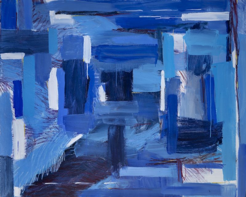 e poi, naturalmente, Kind of Blue, l’olio del 2024 che presta il titolo alla mostra e In limine e Senza più peso, realizzati tra il 2002 e il 2003.