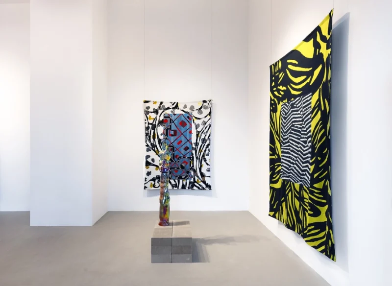 Un effetto simile a quello della personale di Salvatore Arancio Neither His Nor Yours da Federica Schiavo, che unisce serie di opere recenti realizzate in due occasioni diverse, dalla personale al museo MACTE di Termoli nel 2024 a quella, l’anno precedente, al Château-Musée di Tournon-sur-Rhône. Al MACTE di Termoli Arancio aveva esposto 5 sculture in ceramica smaltata, appoggiate su basi in cemento, ispirate a una visita compiuta dall’artista nel 2016 al Bruno Weber Park di Dietikon, in Svizzera – un parco di sculture creato dall’artista svizzero Bruno Weber che hanno ispirato i lavori di Arancio, realizzati con forme avveniristiche e simboliche, eseguite con colori fluorescenti in una bottega di ceramica tradizionale, durante una residenza in Ungheria.