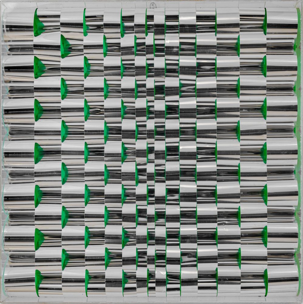 Tra i top lot dell’evento spicca poi Rilievo 902 (stima 50-60 mila euro) di Marina Apollonio. L’opera, in alluminio, verde fluorescente e plexiglass evidenzia in modo chiaro la ricerca cinetica dell’artista, che gioca con materiali e percezioni con precisione chirurgica.