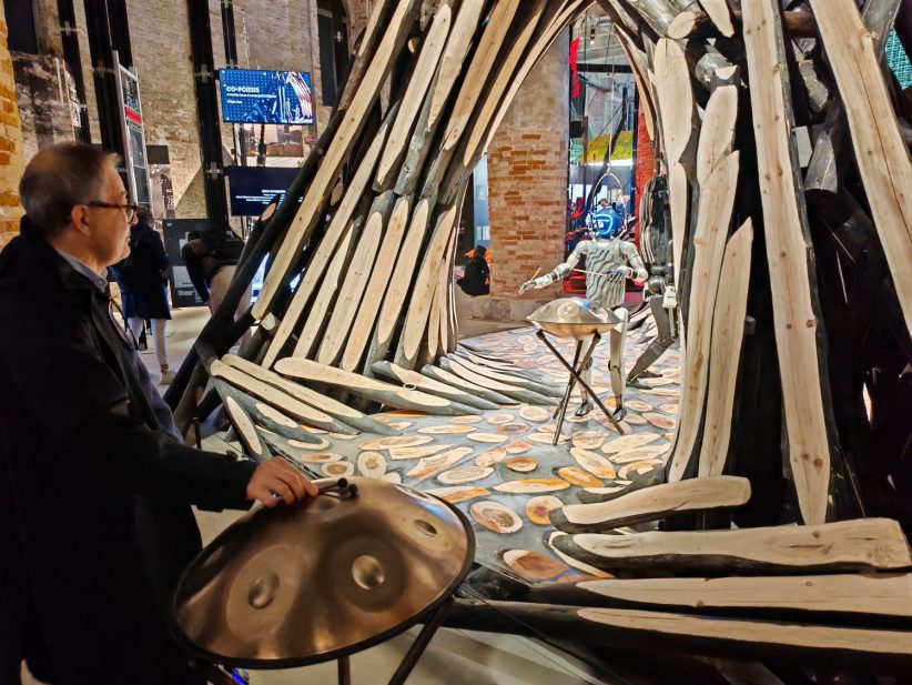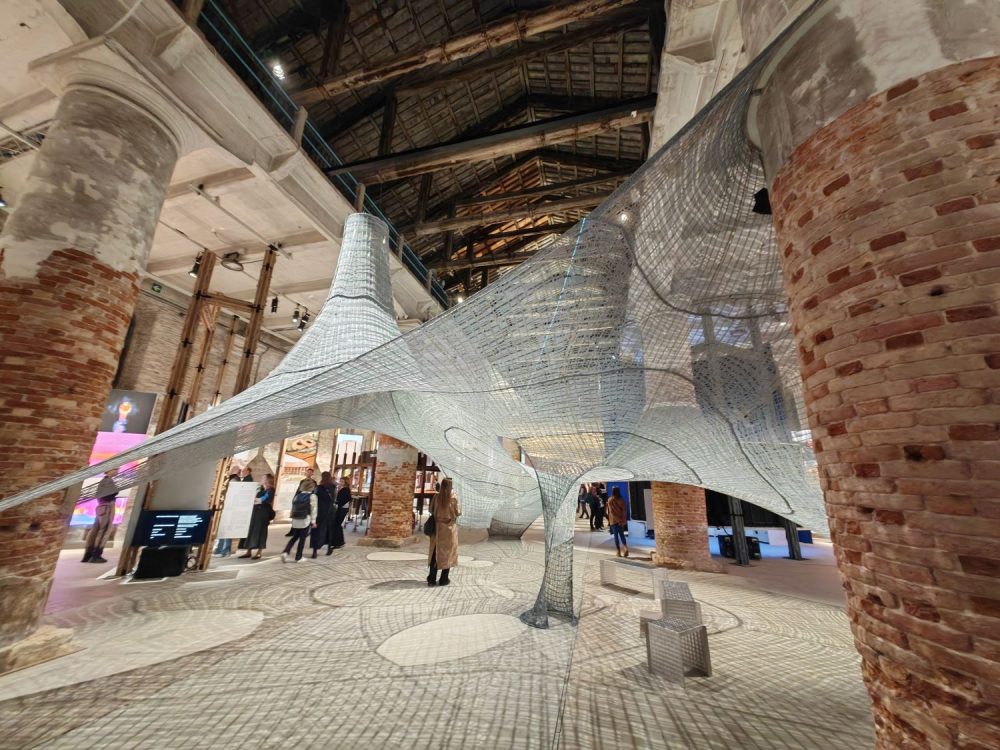 “Vaste reti attraversano le nostre città, formando un’infrastruttura digitale invisibile”, recita uno dei tanti statements sparsi per l’Arsenale. “Con l’avanzare dell’intelligenza artificiale, il ruolo dell’architetto viene radicalmente ridefinito. Cosa accade quando un algoritmo diventa in grado di generare un progetto da un semplice prompt, e una macchina lo costruisce?”. L’inconscio va a pescare nelle paure che tutti noi rifiutiamo di confessare. E allora meglio esorcizzarle: la mostra quindi si infittisce di robot, reti neurali, marchingegni più o meno autonomi che surrogano o provano a surrogare l’uomo. Qui intanto ne vedete prova con immagini e video live…