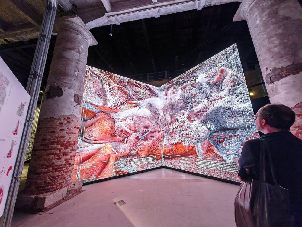 Certo, queste sono soddisfatte: a cominciare dalla sala di apertura, con il caldo soffocante creato dai millemila motori di condizionatori qui riuniti. E avanti di questo passo, con i batteri che “restaurano” le pietre distruggendo il mefitico carbonio, e con le colture idroponiche che ci emenderanno dal consumo del terreno. Ma via via si fa strada un altro tema che diventa nodale nel progetto di Carlo Ratti: il moloch dell’Intelliganza artificiale.