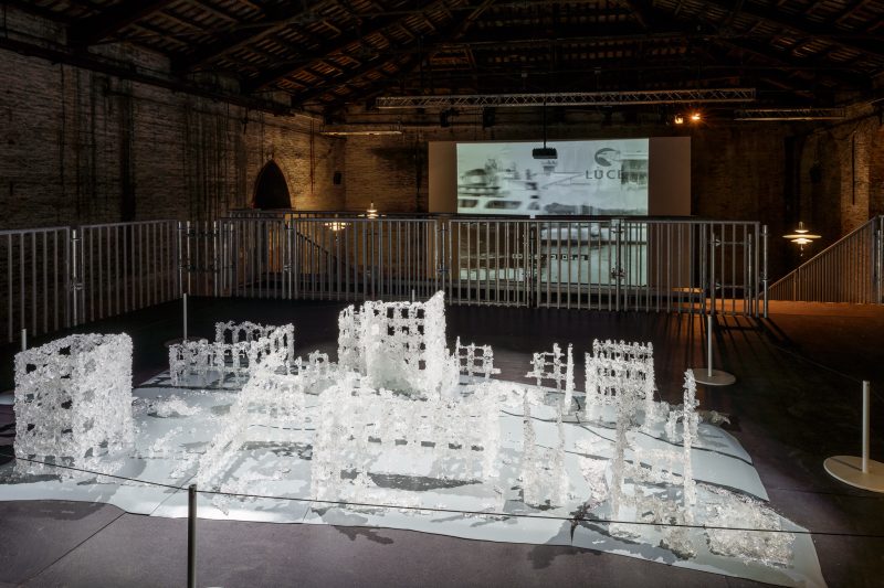Salimei, con Tstudio, si occupa di rigenerazione delle zone portuali e dei lungomari, ma in questa occasione, parafrasando il linguaggio del mare, non “getta l’ancora”, dimostrando curatela e approccio metodologico poco incisivo, anche nell’allestimento per lo più analogico, frettoloso e confuso: il Padiglione Italia appare così il teatro di una mostra nata vecchia, nell’ambito della Biennale ipertecnologica di Carlo Ratti, tra intelligenze naturali, digitali e collettive all’insegna della connessione tra materiali organici, algoritmi e prestazioni robotiche di una post-umanità connessa alla ricerca scientifica e sostenibile.