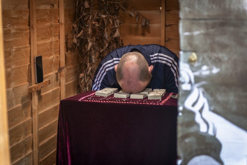 La mostra è visitabile fino al 19 luglio, negli spazi della galleria 10 & ZERO UNO. E ogni tanto, in certi giorni, il capanno si anima. Appaiono le performance. Le persone si siedono, si fanno leggere il futuro. Vengono dipinte. E nel tempo necessario a stendere un volto su una tela, si accorgono che non era il futuro che cercavano, ma un modo per abitare — finalmente — un presente più autentico.