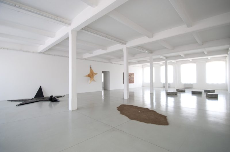 Certo, ma andiamo passo passo. La galleria è stata fondata da Tucci nel 1975 a Torino. Quest’anno celebra i 50 anni. La sede di Torino è stata per un tempo brevissimo, di alcuni mesi, in via Fratelli Calandra. Qualche mese dopo c’è stato il trasferimento al Mulino Feyles, che era in corso Tassoni angolo via San Donato. Era un luogo particolarmente interessante, perché era stato il granaio di Torino, praticamente dove macinavano la farina, uno spazio ex-industriale che aveva smesso la propria attività intorno alla metà degli anni ‘60. Era un edificio molto selvaggio, me lo ricordo bene perché andammo insieme con Tucci a vederlo. Aveva spazi amplissimi e permetteva una grande libertà di azione anche per gli artisti, perché non era uno spazio “educato”, poteva essere usato in modo molto libero. C’era stata anche una coincidenza fortunata: nello stesso periodo, nel 1976, anche Mario e Marisa Merz cercavano uno studio a Torino. Per cui, in questo grande spazio, tirammo su una parete: da una parte c’era lo studio di Mario e Marisa e dall’altra la galleria. Negli anni il mulino diventò anche un centro polivalente, c’era anche Assemblea teatro. Praticamente si era creato in modo naturale quello che tutti cercano sempre di fare… Lì nacque spontaneamente, semplicemente perché c’era un’architettura adatta ad ospitare un progetto come quello. Siamo stati al Mulino Feyles fino al 1990, quando cambiò la proprietà e fummo praticamente sfrattati tutti. Da lì, ognuno si è mosso indipendentemente. Per quanto riguarda noi, come galleria, abbiamo trovato per alcuni anni un altro spazio piuttosto interessante a Torino, vicino a corso Belgio, in via Gattinara. Poi c’è stato, nel 1994, il trasferimento a Torre Pellice. Lo spazio a Torino, qui, (Tucci Russo Chambres d’art, in via Bertolotti, dove ci siamo incontrate, ndr) lo abbiamo aperto nel 2017. La scelta era più che altro dettata dalla necessità di rendersi disponibili in città in qualche modo, come sta capitando a noi oggi. E poi quello che con Tucci avevamo notato e apprezzato di questo spazio di Torino è che riuscivamo a dare una dimensione più intima al lavoro. Perché la sede di Torre Pellice ha comunque delle dimensioni che danno grande libertà, però chiaramente possono anche spaventare, in certo senso…