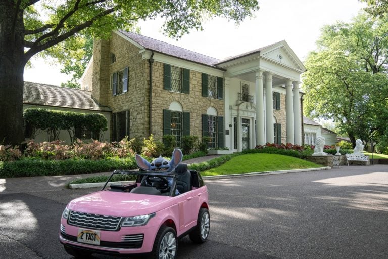 Ma la missione di Stitch non si ferma qui. Dopo Firenze, l’alieno ha fatto rotta verso Graceland, la leggendaria dimora di Elvis Presley a Memphis. Avvolto in un mantello bianco e alla guida di una decappottabile rosa targata “2 FAST”, Stitch ha omaggiato il suo idolo visitando la collezione di costumi e auto del Re del Rock. Un tributo dovuto: la musica di Elvis è una colonna portante del film originale, e perfino Lilo lo definiva “un cittadino modello”.