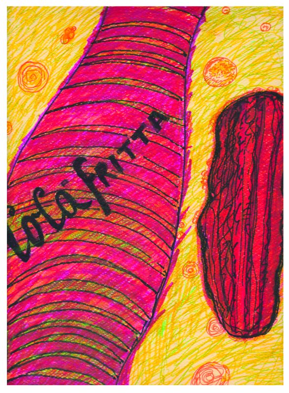 Disegni che non finiscono mai. Cielo, terra, cavalli, gauchos, volti, frutti, gambe, animali, volti che escono da animali, città, finestre infinite, grattacieli o pampa. Colore, in tutti i sensi, fitto, fitto, scorrevole, onnipresente, allegro, niente gli sfugge. È magnifico vedere i disegni di Achille Mauri tutti insieme, insieme al documentario girato in Benin per la Rai negli anni ’80, ai libri che ha pubblicato come editore con i multipli di Lucio Fontana ed Enrico Castellani, insieme ai suoi romanzi: Anime e acciughe e Il paradosso di Achille e alle foto delle sue opere di Land Art.