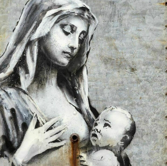 L’ultimo post prima di questo? Risaliva a dicembre: un’immagine disturbante della Vergine Maria che allatta un bambino con un tubo arrugginito al posto del seno – forse una denuncia sulla violenza domestica, o qualcosa di ancora più oscuro.