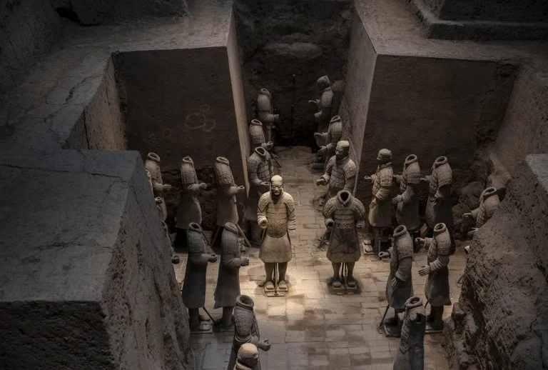 L’Esercito di Terracotta, che dal 1987 è Patrimonio dell’Umanità dell’UNESCO, è uno dei più straordinari progetti funerari mai scoperti. Creato attorno al 210 a.C., è formato da oltre 8.000 guerrieri a grandezza naturale, ognuno con tratti somatici, abiti e acconciature unici. Accanto a loro, centinaia di cavalli, carri, e persino acrobati e musicisti, tutti pronti ad accompagnare l’Imperatore Qin nell’aldilà.