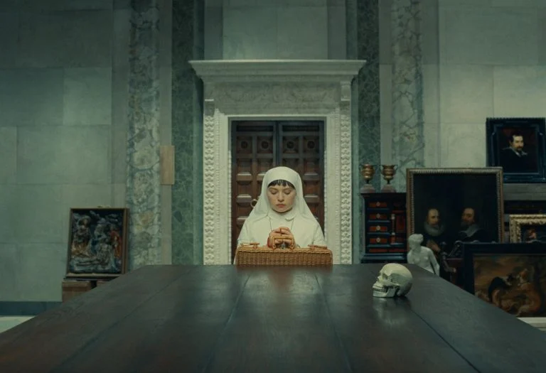 Con una battuta tagliente e ironica, “Non comprare mai bei film. Compra capolavori”, si apre proprio The Phoenician Scheme. A pronunciarla è Zsa-Zsa Korda, un ambiguo magnate interpretato da un magnetico Benicio del Toro. La pellicola è una satira brillante sull’élite del collezionismo d’arte, un mondo fatto di spie, affari sporchi e capolavori dimenticati appoggiati ai muri. Korda, in piena crisi, coltiva un ambizioso – e quanto mai fumoso – “Piano Fenicio”, che dovrebbe aprire una via d’acqua segreta nel Mediterraneo, ma manca il dettaglio più importante: il denaro. Rincorso da killer e governi, sopravvive a piogge di pallottole e aerei abbattuti mentre cerca disperatamente di convincere partner riluttanti, tra cui la figlia perduta, una suora ribelle interpretata da Mia Threapleton, a finanziare la sua visione. Eppure, basti vendere anche solo uno dei quadri che affollano il suo palazzo rinascimentale per risolvere la crisi: opere autentiche, vere, come una sorprendente natura morta di Floris Gerritsz. van Schooten, un enigmatico Magritte del 1942 e persino un Renoir appartenuto a Greta Garbo, venduto da Sotheby’s per 7 milioni di dollari e oggi nella leggendaria collezione della famiglia Nahmad.