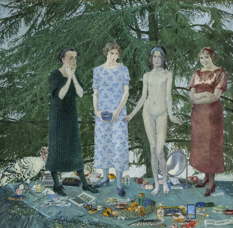 La primavera della pittura 1927-1932 segna una nuova stagione del suo stile grazie a sfumature di tenerezza e a una tavolozza chiara che addolcisce le figure disegnate sempre con lieve esito deformante (tipico dello stile casoratiano) e inserite in ambiente domestico. Non a caso Casorati stesso indica tale apertura (1930) aggiungendo ai quadri Aprile(1930) e Ritratto di fanciulla (1930) anche il titolo “Primavera”. Allo stesso tempo inserisce nuove figure femminili (giovani e non, vestite o nude) aggiungendo donne più in carne a quelle più minute come in Ragazze a Nervi (1930) dove, oltre alle due giovani così diverse ma così simili nel manifestare le rispettive emozioni, compaiono una finestra di mare e cielo e una vibrante natura morta che Casorati ama rappresentare come architettura del quadro.