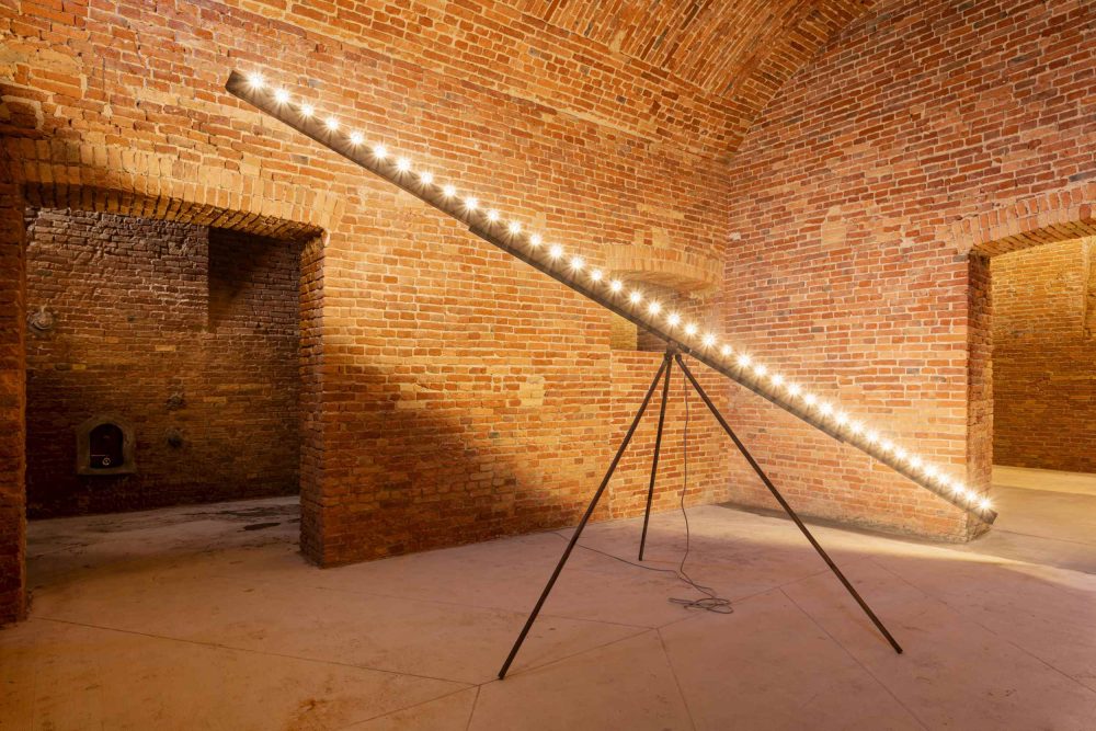 A chiudere il percorso espositivo, due opere luminose della serie Untitled (2018), concepite come sculture luminose. La prima è collocata negli spazi della mostra e si accende per pochi secondi ogni nove minuti, innescando una poetica dell’attesa e del tempo sospeso. La seconda è invece installata nelle cantine sotterranee dove rimane costantemente accesa. Composta da quaranta lampadine, le istallazioni si fanno atmosfera, energia diffusa, presenza viva che abita lo spazio.