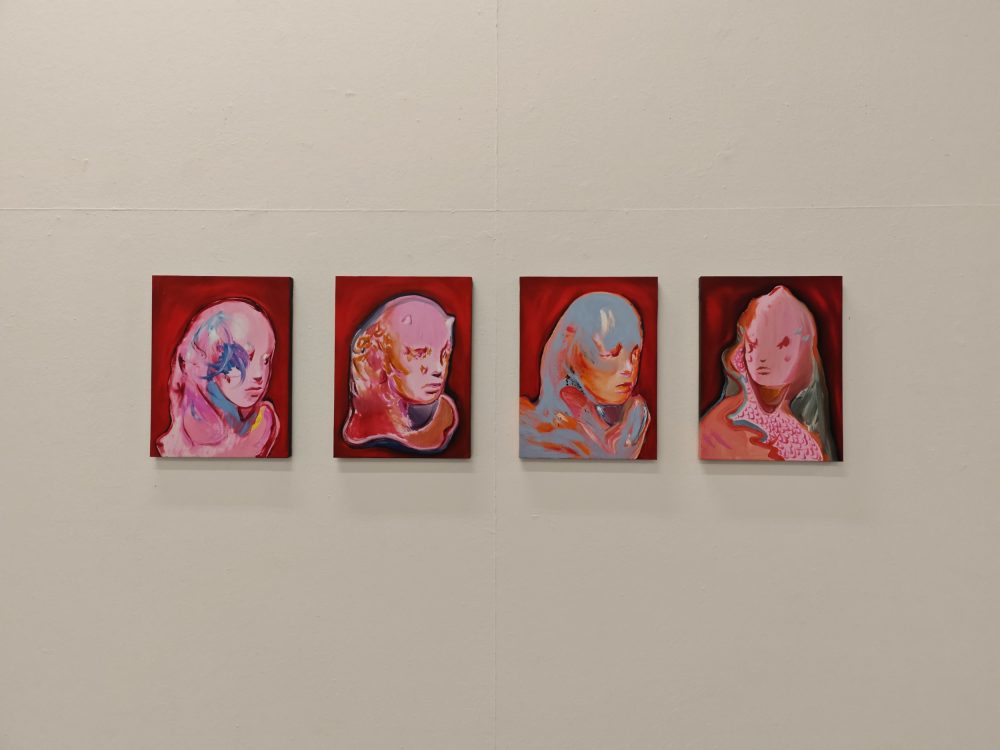 Il taglio non si diversifica troppo dai dipinti precedenti: con la figura umana al centro dell’attenzione, salvo poche eccezioni. Con un ricorrente pensiero all’icona Medardo Rosso, spunto per interpretazioni trasversali, ora ispirate al cinema o ai fumetti, ora a elaborate indagini psicologiche. Dipinti “in cui la figura si specchia in sé stessa o in un suo alter ego, alimentando una tensione che allude al concetto junghiano di ombra”, come scrive con efficacia la curatrice della mostra Giorgia Achilarre.