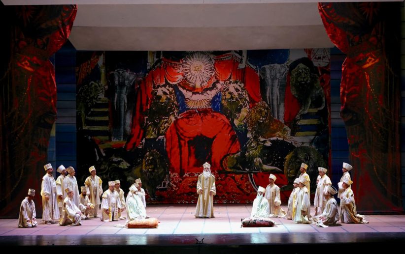 Il Flauto che ha debuttato al Carlo Felice di Genova venerdì 13 giugno, chiudendo la Stagione Lirica 2024-2025, riprende l’allestimento realizzato sempre a Genova nel 2011, che vedeva la collaborazione tra Lele Luzzati e Daniele Abbado, produzione fortunatissima ripresa anche nel 2016. Restano sempre affascinanti le scene disegnate da Emanuele Luzzati ed i costumi, sempre su disegno di Luzzati, realizzati da Santuzza Calì. Siamo certi che anche Mozart e Schikaneder avrebbero apprezzato il gusto e la raffinatezza cromatica con la quale Luzzati è riuscito concretizzare quel mondo fiabesco, nel quale sono protagonisti tutti i personaggi che il bambino che vive in noi continua ad amare: animali fantastici, draghi cattivi, regine, principi e maghi. Il tutto in maniera straordinaria e per nulla invasiva rispetto a musica e canto che devono restare i veri protagonisti di ogni opera lirica.